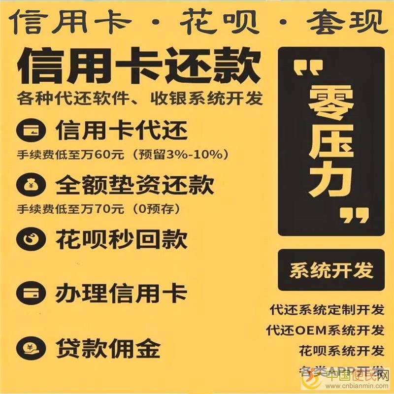 智能代还,xin用ka代还1万只需0.6%!来源www.cnbianmin.com码上还款,一码在手,还款无忧----------------------------------------中+国+便+民+网智能,安全,省钱 ,全额还 只需5%-10%保证金即可撬动全额账单还款资金执行计划后,及时回到账户--------------------------------------- 全国重叠分润三级分销模式中国便民网www.cnbianmin.com每月智能自动还,提升额度,解决临时还资金难题------------------------------------------ 轻松管理多张卡,智能还,支持自定义代还计划,要定制要开发找零零壹cnbianmin.com---------------无卡支付系统自选落地,快捷秒到费率0.22