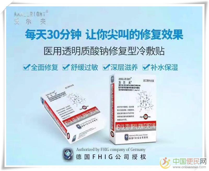 沃尔夫医用透明质酸钠修复型冷敷贴(HA)是德国巴赫大药厂研发,临床试验,注册专利保护均隶属于德国巴赫大药厂,该医用面膜已通过国内多家三甲医院临床验证c_n_b_i_a_n_m_i_n_c_o_m。经国家食品药品监督管理局批准生产及备案注册。