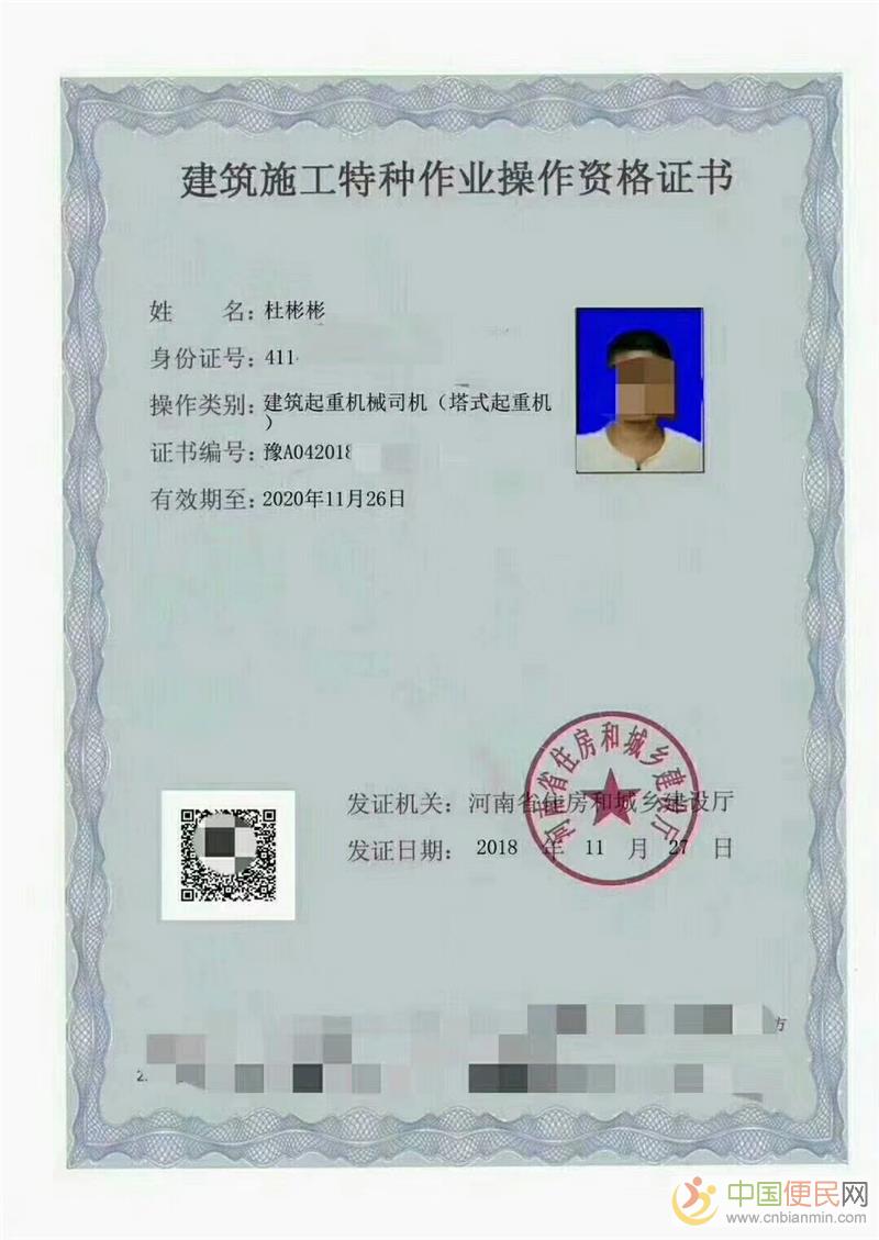 塔吊操作证办理条件:c n b i a n m i n c o m