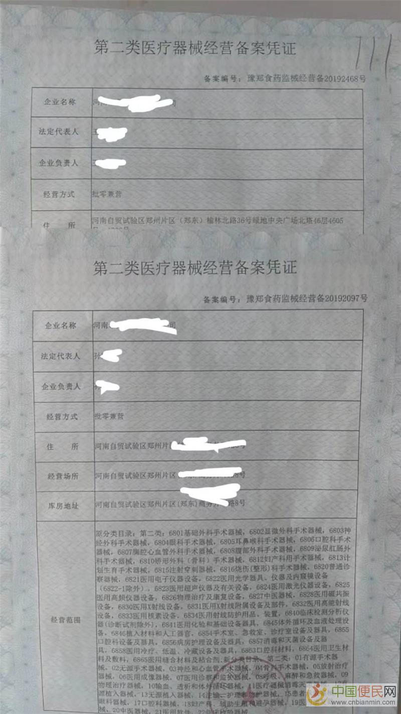 李老师专业代办郑州市三类医疗器械经营许可证----李老师专业代办郑州第二类医疗器械经营备案凭证原文www.cnbianmin.com