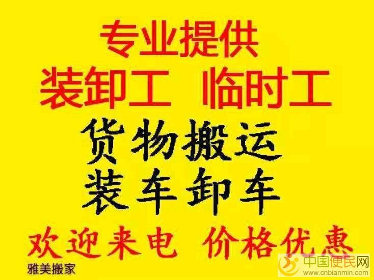 本公司专业提供搬运力工,可重货搬豫下楼,拆装家具,设备搬运装卸移位,各种货物装车,卸车;为您提供临时搬运工,临时装卸工,小时工搬运,小时工装卸,杂工,等各类型临时工服务。我们这里的搬运装卸车工人都是年...
